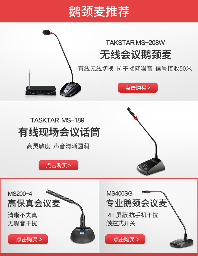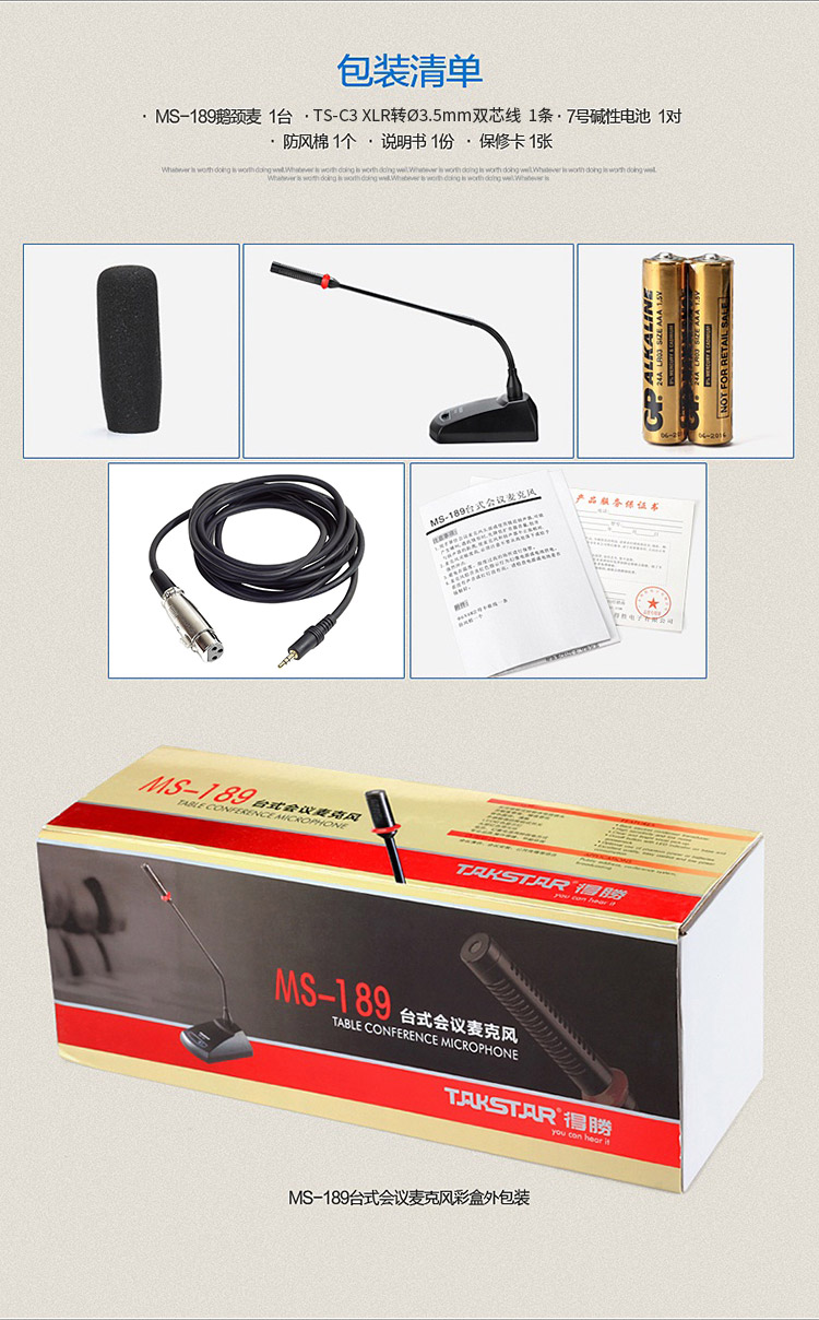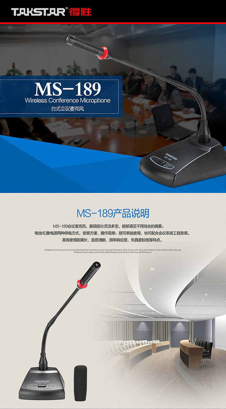 得勝/TAKSTAR MS-189 麥克 會議臺式鵝頸麥克風 專業演出舞臺主持話筒 典雅黑