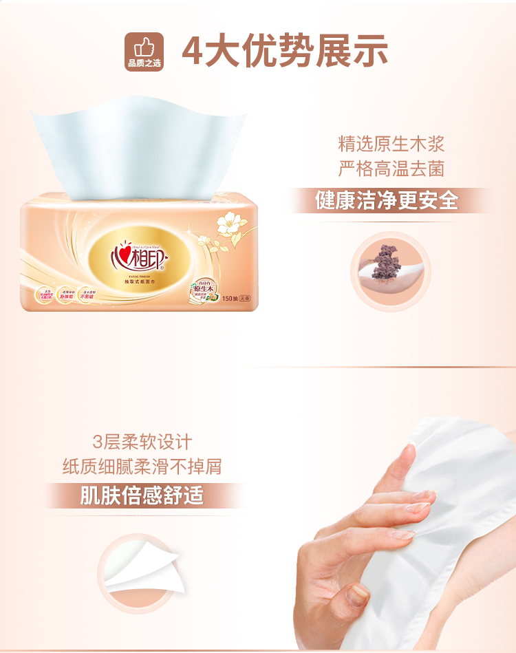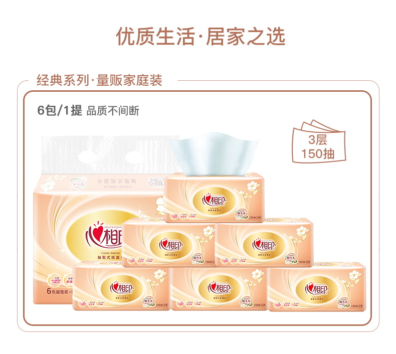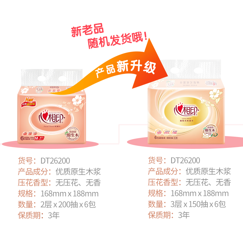 心相印/XINXIANGYIN DT26200 軟包抽取式面紙 軟抽紙面巾經典系列 中規格 3層6包