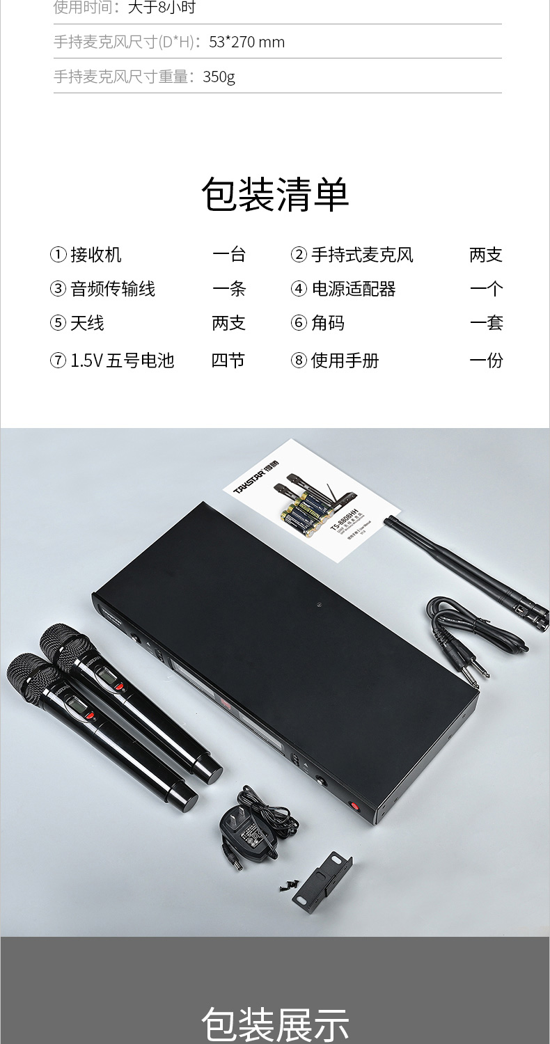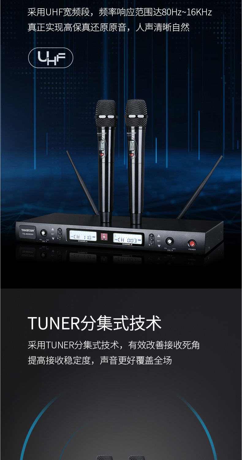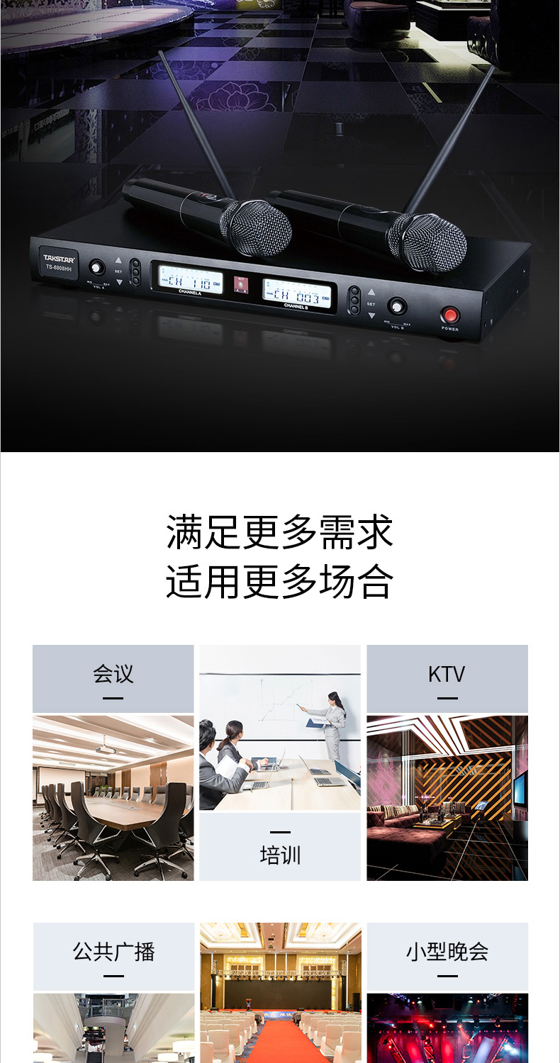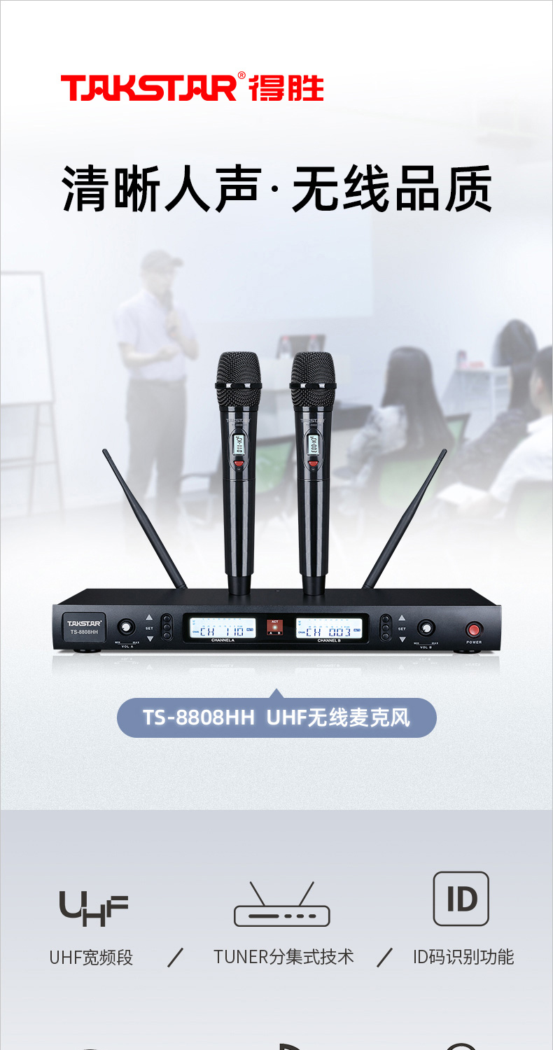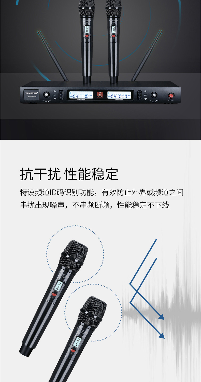 得勝/TAKSTAR TS-8808HH 麥克 無線話筒一拖二麥克風家庭KTV會議培訓主持婚慶舞臺演出話筒 標配