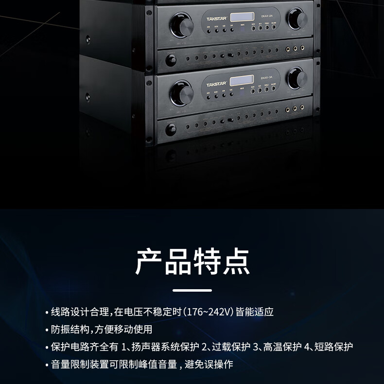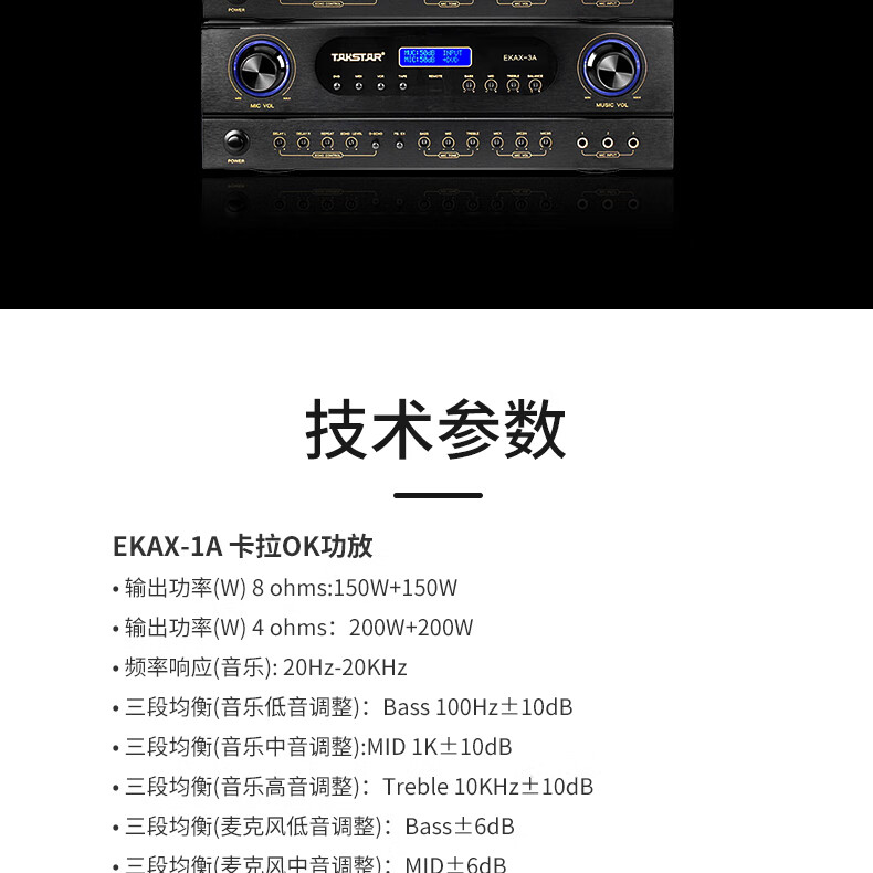 得勝/TAKSTAR EKAX-2A 音頻功率放大器設備(功放設備)合并式功放 雙混響帶音樂和錄音輸出反饋抑制功能 家庭KTV會議背景音樂功率放大器